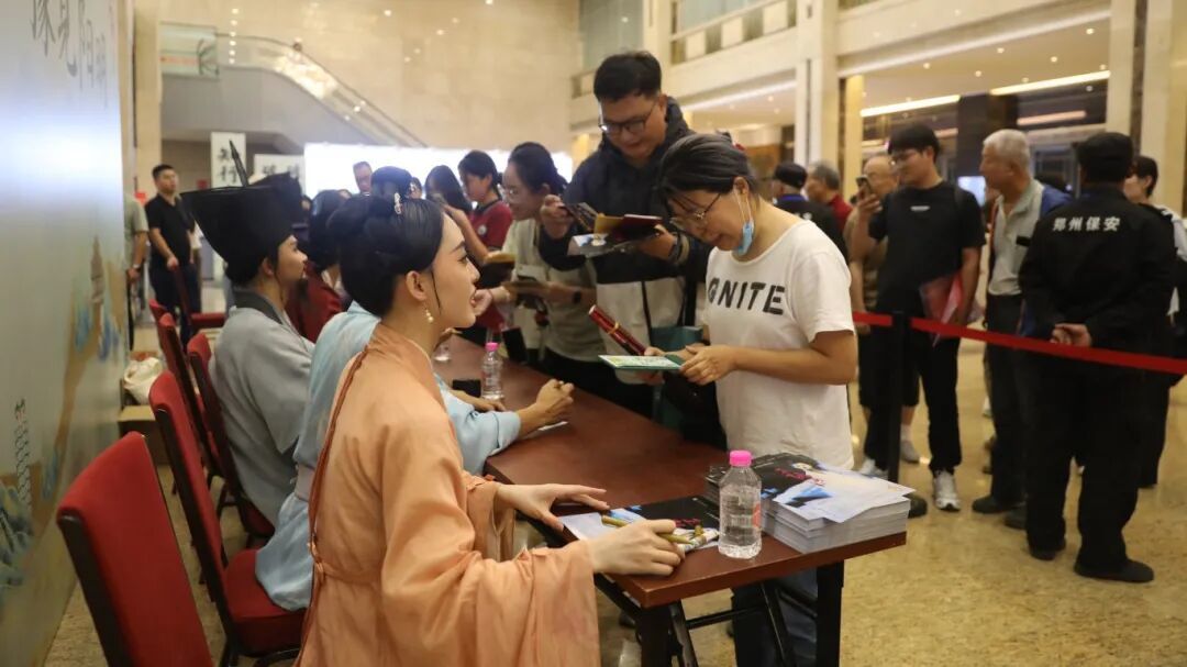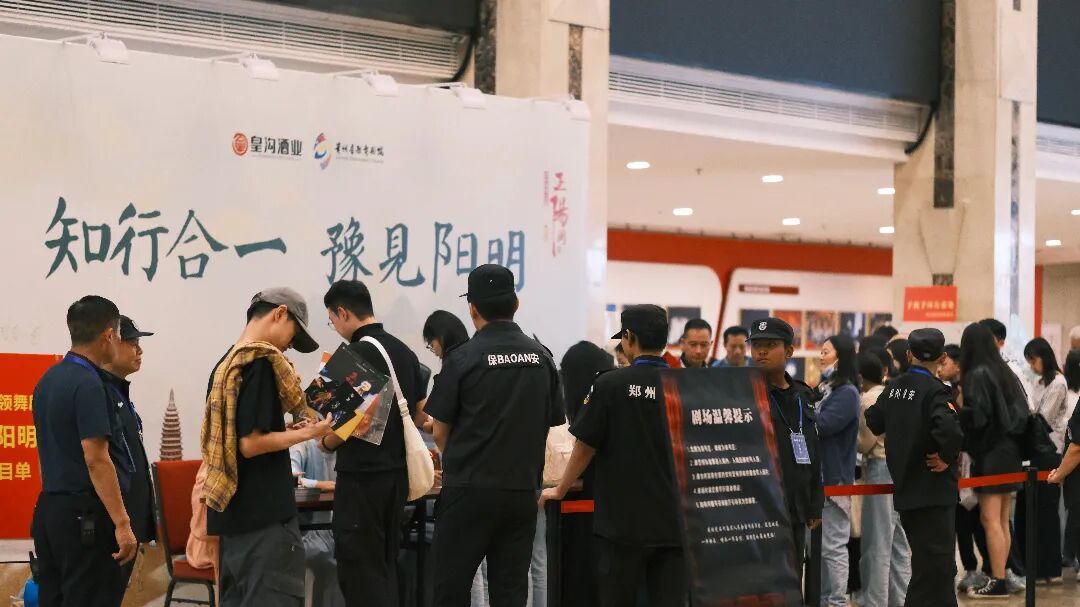 劇場前廳內,觀眾們紛紛在融合漢文化元素與心學理念的打卡點前駐足留影,掃碼關注公眾號領取巡演海報和河南限定版明信片,在馥香酒品展示區品味中原佳釀的獨特韻味,實現了一場跨越五百年的文化對話。