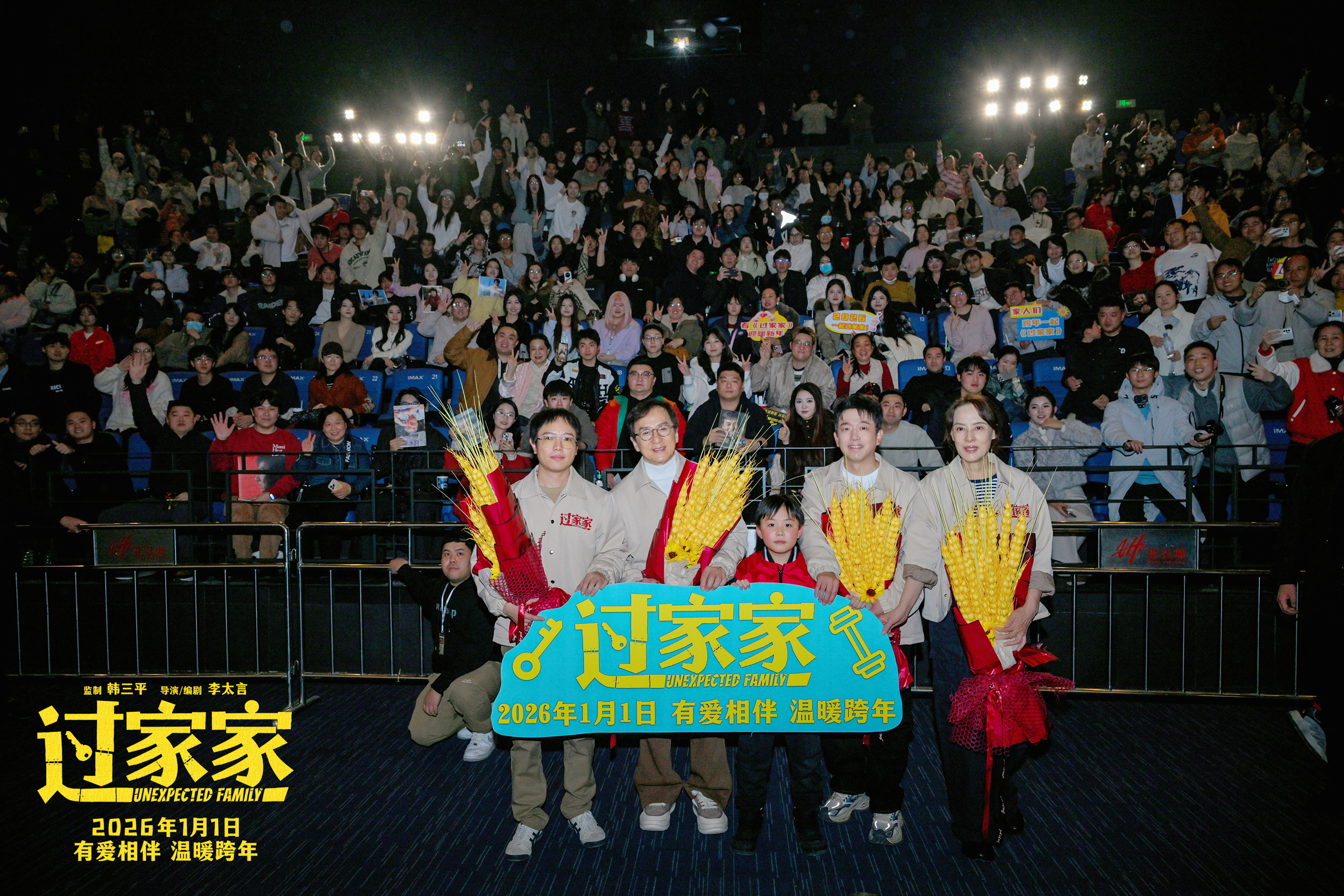 \u003c/p>\u003cp>活動(dòng)現(xiàn)場(chǎng)許多觀眾全家出動(dòng),有的帶著自己的父親、母親,有的帶著自己的孩子,處處彌漫著笑聲與淚光。映后互動(dòng)還有老人院院長(zhǎng)與護(hù)理人員分享感受,大贊成龍突破性演繹,也感謝劇組帶來(lái)這部影片引起社會(huì)對(duì)老年人的關(guān)愛(ài)。影片中質(zhì)樸動(dòng)人的情感打動(dòng)了無(wú)數(shù)人,眾多觀眾分享觀影感受:“電影情感真摯,看的過(guò)程中有笑有淚,被這個(gè)家庭暖到了。”“大哥放下武打,文戲同樣拳拳到心。”“看完想立刻回家陪陪父母,有些愛(ài)不能等。”\u003c/p>\u003cp>跨年合家歡電影《過(guò)家家》講述了一群沒(méi)有血緣關(guān)系的陌生人,因機(jī)緣巧合生活在同一屋檐下,從“臨時(shí)家庭”的吵吵鬧鬧,到彼此守護(hù)、成為真正“家人”的溫情故事。影片以溫暖真摯的筆觸,描繪一個(gè)家庭中妙趣橫生的烏龍、笑中帶淚的溫情。\u003c/p>\u003cp>電影《過(guò)家家》由韓三平監(jiān)制,李太言導(dǎo)演兼編劇,沈京喜、傅若清、谷良擔(dān)任出品人,吳一峰擔(dān)任制片人,成龍、彭昱暢、張佳寧領(lǐng)銜主演,潘斌龍、李萍主演,于2026年1月1日元旦全國(guó)上映。\u003c/p>\u003cp>\u003cstrong>全民共情:從6歲娃到異鄉(xiāng)人,人人都能找到自己的“家”\u003c/strong>\u003c/p>\u003cp>跨年合家歡電影《過(guò)家家》“有愛(ài)相伴”全國(guó)路演來(lái)到熱情好客的鄭州,觀眾的無(wú)限熱情溫暖了整個(gè)冬日。影片導(dǎo)演、編劇李太言,領(lǐng)銜主演成龍,主演潘斌龍、李萍與千余名觀眾熱烈互動(dòng),許多家庭結(jié)伴而來(lái),三代人一同觀影成了影廳內(nèi)一道亮麗的風(fēng)景線。\u003c/p>\u003cp>一位異鄉(xiāng)求學(xué)的大學(xué)生現(xiàn)場(chǎng)撥通了與83歲奶奶的視頻電話。他坦言,奶奶每周都會(huì)守著電話等他,“奶奶永遠(yuǎn)第一時(shí)間接通我的電話。看了電影《過(guò)家家》讓我感慨萬(wàn)千,也讓我更加珍惜與奶奶相伴的時(shí)光,希望每個(gè)人都能帶著自己的家人觀影,因?yàn)閻?ài)就是陪伴。”這一幕讓成龍紅了眼眶,他感慨道:“現(xiàn)在通訊方便,一定要常聯(lián)系,常回家看看。愛(ài)要勇敢說(shuō)出口。”主創(chuàng)團(tuán)隊(duì)還集體向視頻中的奶奶問(wèn)好,溫情溢滿影廳。\u003c/p>\u003cp>一位61歲的退伍老兵在兒子陪伴下,專程來(lái)看《過(guò)家家》,他表示:“我和兒子的關(guān)系就像朋友一樣密切,今天是我的生日,他帶我看了這樣一部?jī)?yōu)秀的電影,我感到非常幸福。”成龍現(xiàn)場(chǎng)演唱《生日快樂(lè)》歌祝福二人。一位聾啞觀眾通過(guò)手勢(shì)向成龍以及電影《過(guò)家家》表達(dá)喜愛(ài),自學(xué)手語(yǔ)的成龍看認(rèn)真用手語(yǔ)回應(yīng):“他說(shuō)他愛(ài)我,愛(ài)我們的電影,我也愛(ài)他。”簡(jiǎn)單的手語(yǔ)交流,跨越語(yǔ)言障礙,正如電影《過(guò)家家》所呈現(xiàn)的情感內(nèi)核,真誠(chéng)與善意無(wú)關(guān)形式,只要用心,就能被感知。\u003c/p>\u003cp>\u003cimg src=\"https://x0.ifengimg.com/ucms/2026_01/D0E88C80FC96195C3EA0362BFF80DBA700B6C7E7_size8546_w2752_h4128.jpg\" />\u003c/p>\u003cp>電影《過(guò)家家》聚焦的“非血緣家人”議題,讓異鄉(xiāng)打拼的觀眾感同身受:“電影里不完美的陌生人湊成家人,讓我想起在鄭州打拼時(shí)的朋友,他們就是我自己選的家人”;還有觀眾看完當(dāng)場(chǎng)決定:“明天就買票帶爺爺來(lái)看,讓他感受這份溫暖”。影片用一場(chǎng)“過(guò)家家”般的善意謊言,詮釋了“家”的真正含義——無(wú)關(guān)血緣,唯關(guān)真心。一位觀眾流淚訴說(shuō)電影的動(dòng)人:“我的媽媽在我很小的時(shí)候就生了病,我太能理解這種家庭的陪伴是多么重要。”他的好友則在一旁加油打氣:“沒(méi)關(guān)系,有我支持你,我也是你的家人。”\u003c/p>\u003cp>\u003cstrong>有笑有淚:成龍突破文戲封神,社會(huì)話題引發(fā)集體共鳴\u003c/strong>\u003c/p>\u003cp>電影《過(guò)家家》不僅有笑有淚,還有著深層的思考與溫度。成龍?jiān)谟捌酗椦莸娜蔚瑥膱?zhí)著“兒子必須當(dāng)冠軍”到釋懷“盡力就好”的轉(zhuǎn)變,引發(fā)全場(chǎng)關(guān)于親子關(guān)系的深度共鳴。\u003c/p>\u003cp>一位帶孩子前來(lái)觀影的母親坦言自己被電影深深觸動(dòng):“我平時(shí)對(duì)孩子要求很高,總希望他再進(jìn)步一點(diǎn),卻很少問(wèn)問(wèn)他累不累。這部電影讓我反思,孩子的成長(zhǎng)更需要陪伴和理解,而不是一味強(qiáng)加我的意志。”她的孩子在一旁默默流淚,成龍結(jié)合自身經(jīng)歷走心分享,成為無(wú)數(shù)家長(zhǎng)的“清醒劑”:“以前我總把自己沒(méi)做到的事強(qiáng)加給兒子,現(xiàn)在我只希望他健康平安,父子像朋友一樣相處反而更融洽。望子不一定要成龍,孩子有自己的人生,不用逼他活成我們期待的樣子。”這番真誠(chéng)告白與李萍對(duì)“卷媽”的硬核勸誡“別把意志強(qiáng)加給孩子,要做彼此的朋友”形成呼應(yīng),更有觀眾表示“看完電影就想給孩子發(fā)條信息,告訴他“你盡力就好”。\u003c/p>\u003cp>除了育兒觀引發(fā)共鳴,成龍徹底卸下拳腳的表演同樣收獲滿場(chǎng)贊譽(yù)。他飾演的阿爾茨海默癥老人任爹,眼神迷茫、動(dòng)作遲緩的