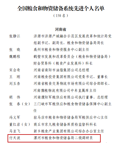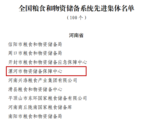 漯河市榮獲全國糧食和物資儲備系統“雙先進”
