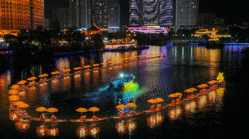 節假日的五顯廟文旅街區更添熱鬧:江畔音樂會奏響民謠與搖滾,非遺火壺表演、煙花秀輪番上演。夜幕下,錦江畔的燈光與江水共舞,古建筑與現代裝置藝術碰撞,傳統集市與后備箱市集交織,形成“歷史可觸摸、潮流可參與”的沉浸式體驗。這里是歷史的空間,也是生活的現場,承載著這座城市的記憶,也迎接著來自四面八方的步履與目光。