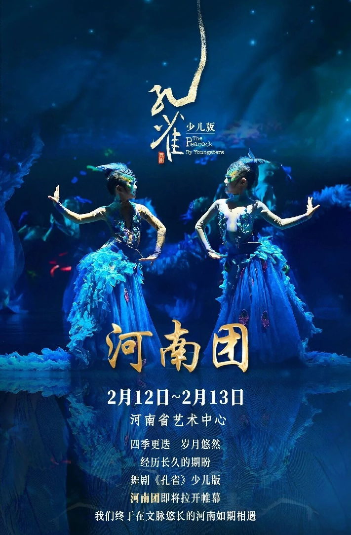 \u003c/p>\u003cp>\u003cimg src=\"https://x0.ifengimg.com/ucms/2026_07/646CB849C23AC7DDF08CB5F57F751548D4FFFD55_size842_w711_h1083.png\" />\u003c/p>\u003cp>\u003cstrong>緣起中原千年根系滋養(yǎng)生命之舞\u003c/strong>\u003c/p>\u003cp>\u003cstrong>楊麗萍舞劇《孔雀》出少兒版了\u003c/strong>\u003c/p>\u003cp>河南,華夏文明的精神根系所在。這片土地深諳扎根、沉淀、而后勃發(fā)的哲學(xué),與《孔雀》所詮釋的生命輪回與絢爛綻放高度。在此首演,不僅是一次藝術(shù)呈現(xiàn),更是一次意味深長的文化溯源。孩子們的藝術(shù)表達,將因此被注入獨特的沉穩(wěn)底氣與文化認同。雙雀臨豫見證傳承,接續(xù)榮光與大師同臺站在榮耀的起點\u003c/p>\u003cp>\u003cimg src=\"https://x0.ifengimg.com/ucms/2026_07/4B5AB37EB7BA6572E63A65AB5369BD2620A4CB7D_size103_w865_h577.jpg\" />\u003c/p>\u003cp>\u003cimg src=\"https://x0.ifengimg.com/ucms/2026_07/C92AE7A4DB3F6423C2C700ECF397671AD4D2A00D_size98_w863_h552.jpg\" />\u003c/p>\u003cp>\u003cimg src=\"https://x0.ifengimg.com/ucms/2026_07/5410F9EA64DB09D119758F41A9F274C57CC529D6_size204_w864_h1274.jpg\" />\u003c/p>\u003cp>\u003cimg src=\"https://x0.ifengimg.com/ucms/2026_07/0546765103F9E53802B48A5648937901F5E43A39_size210_w864_h1348.jpg\" />\u003c/p>\u003cp>\u003cimg src=\"https://x0.ifengimg.com/ucms/2026_07/FD855C611B29CC0D6548F7BFA72559928E005378_size230_w861_h1147.jpg\" />\u003c/p>\u003cp>2026年1月16日至18日,楊麗萍老師親臨河南省藝術(shù)中心大劇院,領(lǐng)銜演繹原版舞劇《孔雀》,以巔峰之作點燃舞臺。看過舞劇的觀眾意猶未盡,為之驚嘆,在河南藝術(shù)界產(chǎn)生很大的影響。緊接著,2月12日至2月13日,舞劇《孔雀》少兒版將由河南的孩子們在此接棒上演,這意味著,我們的小舞者將緊隨藝術(shù)大師的腳步,踏上同一方頂級專業(yè)舞臺。參演的小演員們非常的激動,追逐大師的夢想,踏著孔雀的舞步,孩子展開飛翔的翅膀,在舞臺上盡情演繹。\u003c/p>\u003cp>藝術(shù)的傳承見證文化傳承的力量,與大師同臺讓孩子們迅速站在榮耀的起點,為以后的舞蹈人生打開成功的大門。當(dāng)你看到那一只只小孔雀們嘻嘻哈哈,唧唧喳喳歡快地跳躍、起舞、飛翔在舞臺上空。在河南舞劇院構(gòu)造出自然界最美麗的畫面,多么讓人期待。\u003c/p>\u003cp>\u003cimg src=\"https://x0.ifengimg.com/ucms/2026_07/95FCC9E42633040E7A32F6726B77B3FF40D1B2CE_size78_w863_h575.jpg\" />\u003c/p>\u003cp>\u003cimg src=\"https://x0.ifengimg.com/ucms/2026_07/531594D28972C181C9AE89D2EFFE502800463084_size80_w864_h576.jpg\" />\u003c/p>\u003cp>\u003cimg src=\"https://x0.ifengimg.com/ucms/2026_07/EB0BDA5B11E13E61F13D56E755F03913D116B2B1_size432_w863_h518.png\" />\u003c/p>\u003cp>這不僅是孩子們難得的機會,更讓孩子們從起點便沉浸于最高規(guī)格的藝術(shù)氣場中,親身體驗何為專業(yè)、何為經(jīng)典、何為藝術(shù)的最高境界。\u003c/p>\u003cp>\u003cstrong>中原文化地標(biāo),河南省藝術(shù)中心大劇院\u003c/strong>\u003c/p>\u003cp>\u003cstrong>楊麗萍老師的原版舞劇《孔雀》曾在此上演\u003c/strong>\u003c/p>\u003cp>河南省藝術(shù)中心大劇院坐落于鄭州鄭東新區(qū)CBD核心,五座橢圓體建筑猶如“藝”字飛舞,又如古代樂器“石磬”,是現(xiàn)代設(shè)計對古典禮樂文明的致敬。\u003c/p>\u003cp>\u003cimg src=\"https://x0.ifengimg.com/ucms/2026_07/2E61C665DB1E727C8F5A4C6C7EDCA2367FC0D9D0_size164_w670_h170.png\" />\u003c/p>\u003cp>其大劇院擁有國內(nèi)一流的聲學(xué)環(huán)境、舞臺機械和觀演設(shè)施,是承接國內(nèi)外頂級演出、展現(xiàn)中原文化形象的首選平臺。 楊麗萍老師的原版舞劇《孔雀》在此上演,便是對其專業(yè)性的最高認可。對于舞劇《孔雀》少兒版的孩子們而言,能夠在楊麗萍老師剛剛演出過的同一個專業(yè)劇場里登臺演出,是至高規(guī)格的實踐體驗,更是一次藝術(shù)生命的沉浸。\u003c/p>\u003cp>\u003cstrong>專業(yè)傳承,習(xí)得經(jīng)典 重塑經(jīng)典,契合心智\u003c/strong>\u003c/p>\u003cp>楊麗萍的名字與“孔雀舞”緊緊相連,楊麗萍舞蹈的傳承具有很大的影響力量。把“舞臺交給下一代”是最好最直接的精神文化傳承。舞劇《孔雀》少兒版由楊麗萍文化集團旗下子公司---云南:雀之戀教育投資集團的資深舞者親授,孩子們將系統(tǒng)學(xué)習(xí)原汁原味的“孔雀舞”動作與美學(xué)神韻,參演的孩子舞蹈基礎(chǔ)非常扎實。他們是全國各地層層選拔出的小舞者,在名師的嚴(yán)格訓(xùn)練下,指引中,讓他們跟著音樂慢慢領(lǐng)悟經(jīng)典,塑造經(jīng)典,孩子們在參演的過程中無形中獲得了終身財富,提高了眼界、增強了文化素養(yǎng)學(xué)會了吃苦和堅持的信念。\u003c/p>\u003cp>這絕非是一場平凡的舞蹈課,也不是一場普通的舞劇演出。能登上省級藝術(shù)中心,完成一部完整舞劇,本身就是一次珍貴的藝術(shù)啟蒙。孩子們將通過與頂尖舞者面對面交流、以專業(yè)標(biāo)準(zhǔn)要求自己,收獲藝術(shù)素養(yǎng)的全面提升。\u003c/p>\u003cp>\u003cimg src=\"https://x0.ifengimg.com/ucms/2026_07/A420CC41DACCCB6C37C1451F570B614EEF1DC7C9_size345_w864_h576.png\" />\u003c/p>\u003cp>\u003cimg src=\"https://x0.ifengimg.com/ucms/2026_07/8F41D9BD6E53CAB05F33EFB0F1DDFB8ECAD5D02E_size419_w863_h575.png\" />\u003c/p>\u003cp>\u003cstrong>舞劇《孔雀》少兒版,在中原見證羽翼初豐\u003c/strong>\u003c/p>\u003cp>\u003cstrong>跟隨大師腳步,點亮孩子們藝術(shù)人生\u003c/strong>\u003c/p>\u003cp>楊麗萍的舞劇《孔雀》源于自然與生命的表達,大自然是