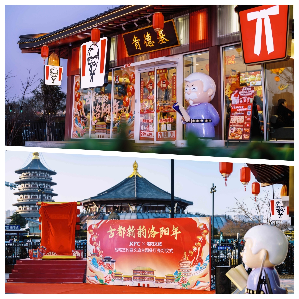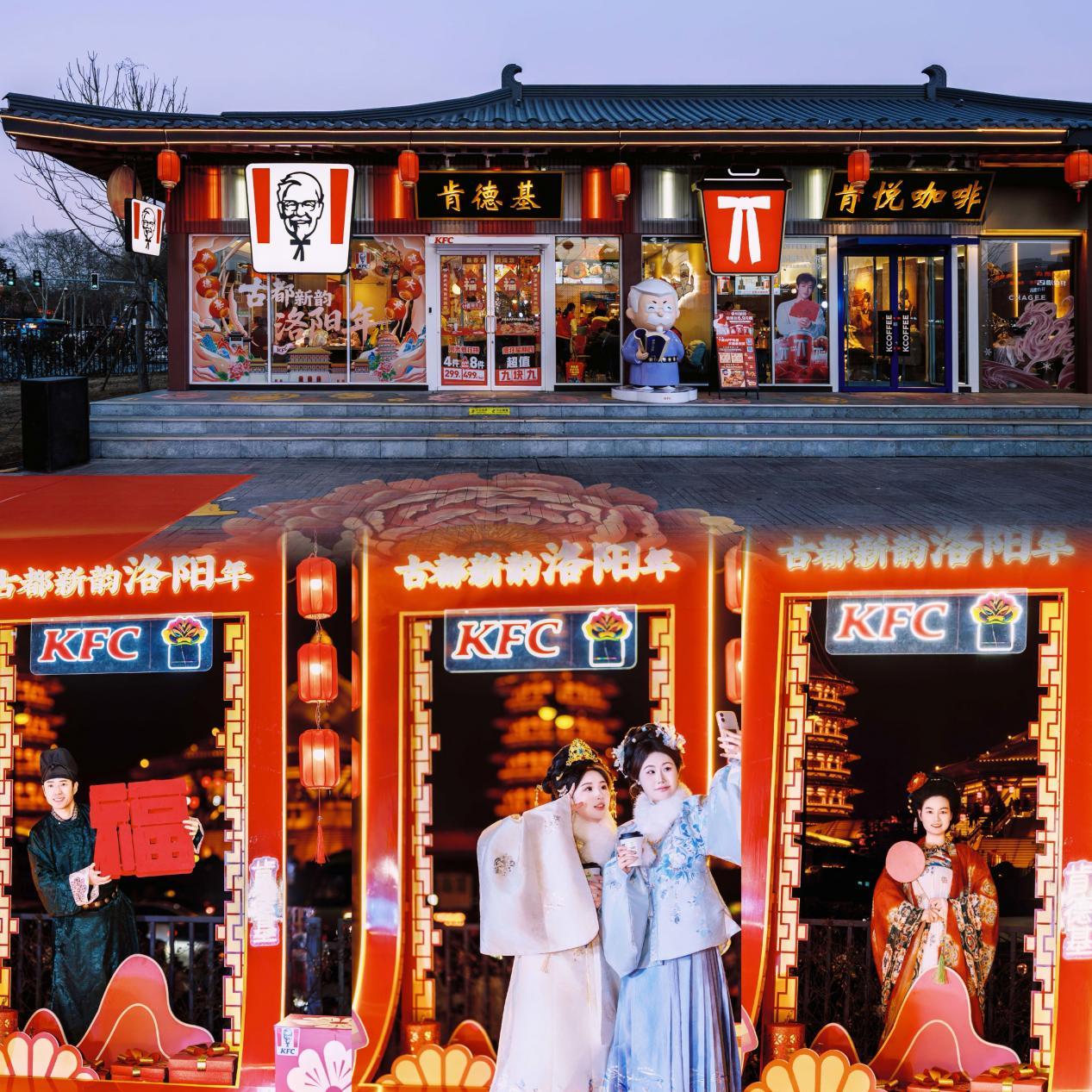 \u003c/p>\u003cp>洛陽市文化廣電和旅游局、河南肯德基雙方代表出席儀式,并共同為位于應天門廣場的肯德基“古都新韻洛陽年”主題餐廳亮燈。\u003c/p>\u003cp>\u003cimg src=\"https://x0.ifengimg.com/ucms/2026_07/10E250C229592DC630B8217FE4FE38F469014F3D_size142_w1266_h844.jpg\" />\u003c/p>\u003cp>作為合作啟動的首個落地項目,肯德基應天門“古都新韻洛陽年”餐廳占據(jù)絕佳觀景位置。其外擺區(qū)視野開闊,可遠眺應天門及天堂明堂景區(qū),為消費者提供了“用餐即觀景”的獨特體驗。為增強互動性與傳播度,餐廳特別在此區(qū)域設置了兼具設計感與文化味的拍照打卡裝置,供游客與市民免費使用。這一深受年輕人喜愛的設計,不僅將古都盛景與現(xiàn)代消費場景生動連接,更吸引了大量人群駐足體驗、分享,使餐廳本身成為文旅融合的鮮活載體。在室內設計上,餐廳亦巧妙融入洛陽牡丹、應天門等文化符號,并在餐廳內設置“洛陽禮物”展示區(qū)及蓋章打卡體驗臺。其夜間亮化效果與應天門遺址燈光交相輝映,共同構成洛陽夜經濟的嶄新風景。\u003c/p>\u003cp>\u003cimg src=\"https://x0.ifengimg.com/ucms/2026_07/4EA9E2F8ADD6BDC075C0C34E2D8252D39AB75126_size302_w1267_h1267.jpg\" />\u003c/p>\u003cp>河南肯德基市場總經理王振宇在致辭中表示:“深耕河南近30年,肯德基不僅是河南經濟社會發(fā)展的參與者,更始終致力于成為本地文化的融合者和創(chuàng)新表達的探索者。我們將以此次戰(zhàn)略簽約為契機,全面依托洛陽優(yōu)越的文商旅發(fā)展環(huán)境,持續(xù)深化合作。期待肯德基在洛陽的餐廳網絡,能成為展示洛陽四季之美、文化之魅力的流動窗口;也期待能運用品牌在產品創(chuàng)新、數(shù)字互動和場景運營方面的經驗,未來與洛陽在牡丹文化節(jié)等更廣闊的領域,共同開發(fā)更多兼具文化深度與市場熱度的特色體驗項目,為“老家河南”的高質量發(fā)展,為洛陽國際文化旅游名城的建設,持續(xù)貢獻我們的一份力量。”\u003c/p>\u003cp>洛陽市文化廣電和旅游局黨組書記、局長李振刊指出:“此次戰(zhàn)略合作是洛陽文旅業(yè)態(tài)創(chuàng)新和品牌年輕化的重要舉措。我們看重肯德基強大的品牌號召力、全國性的網絡覆蓋及成熟的數(shù)字化運營體系。希望通過此次合作,不僅能打造出吸引年輕人的消費新場景,更能構建一個可持續(xù)、可復制的‘文旅+餐飲’協(xié)同模式,讓洛陽文化以更親切、更時尚的方式觸達全國游客。”\u003c/p>\u003cp>\u003cimg src=\"https://x0.ifengimg.com/ucms/2026_07/36B96A6684CBA14EF93007FFE101DBD0D688AA9F_size1087_w1200_h1200.jpg\" />\u003c/p>\u003cp>隨著象征合作啟航的燈光點亮,“文旅+餐飲”的創(chuàng)新生態(tài)在古都洛陽正式播下種子。據(jù)悉,除主題餐廳外,雙方已規(guī)劃在2026年逐步推出系列聯(lián)合行動,涵蓋文旅跨界聯(lián)名活動、文旅主題場景營造、文創(chuàng)產品、節(jié)慶事件共創(chuàng)等多個維度,全面激活文旅消費潛力,為洛陽推進國際文化旅游名城建設注入新動能。\u003c/p>","type":"text"}],"currentPage":0,"pageSize":1},"editorName":"王聰兒","faceUrl":"http://ishare.ifeng.com/mediaShare/home/876322/media","vestAccountDetail":{},"subscribe":{"type":"vampire","cateSource":"","isShowSign":0,"parentid":"0","parentname":"傳媒","cateid":"876322","catename":"鳳凰網河南","logo":"http://d.ifengimg.com/q100/img1.ugc.ifeng.com/newugc/20171219/17/wemedia/0fc92208d7ced0e7fa170827f0650381ff366b11_size19_w200_h200.png","description":"鳳凰網河南,影響中原的力量。","api":"http://api.3g.ifeng.com/api_wemedia_list?cid=876322","show_link":1,"share_url":"https://share.iclient.ifeng.com/share_zmt_home?tag=home&cid=876322","eAccountId":876322,"status":1,"honorName":"","honorImg":"http://x0.ifengimg.com/cmpp/2020/0907/1a8b50ea7b17cb0size3_w42_h42.png","honorImg_night":"http://x0.ifengimg.com/cmpp/2020/0907/b803b8509474e6asize3_w42_h42.png","forbidFollow":0,"forbidJump":0,"fhtId":"92769226","view":1,"sourceFrom":"","declare":"","originalName":"","redirectTab":"article","authorUrl":"https://ishare.ifeng.com/mediaShare/home/876322/media","newsTime":"2026-02-12 17:55:03","lastArticleAddress":"來自河南"}},"keywords":"洛陽,肯德基,古都,餐廳,文旅,旅游局,餐飲,游客,河南,文化旅游","hasCopyRight":true,"sourceReason":"","isHubeiLocal":false,"interact":{"isCloseShare":false,"isCloseLike":false,"isOpenCandle":false,"isOpenpray":false},"__nd__":"ne883dbn.ifeng.com","__cd__":"c01049em.ifeng.com"};